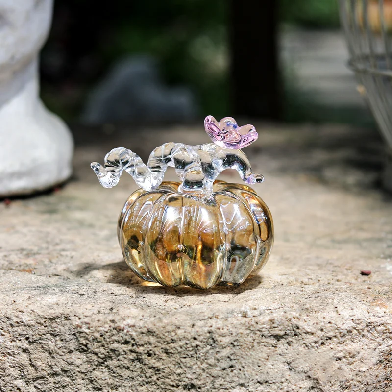 Mini skleněná tykevnatá figurka Okouzlující dekorace pro stůl Barevná krystalová ozdoba ve tvaru tykve