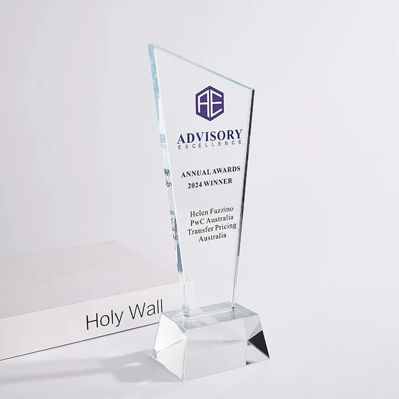 Leuchtende Großhandels-Trophäen mit individuellem Holzfuß aus Kristallglas für Auszeichnungen und Andenken