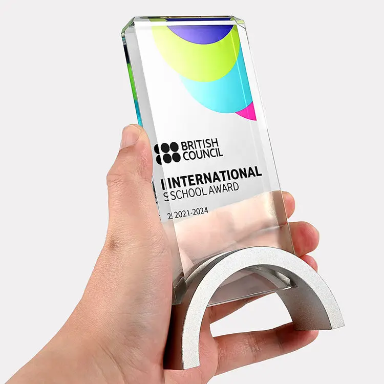 2023 Angepasstes LOGO-Award, Glas 4C-Druck Trophäe, Kristallgravur Auszeichnung für Andenken