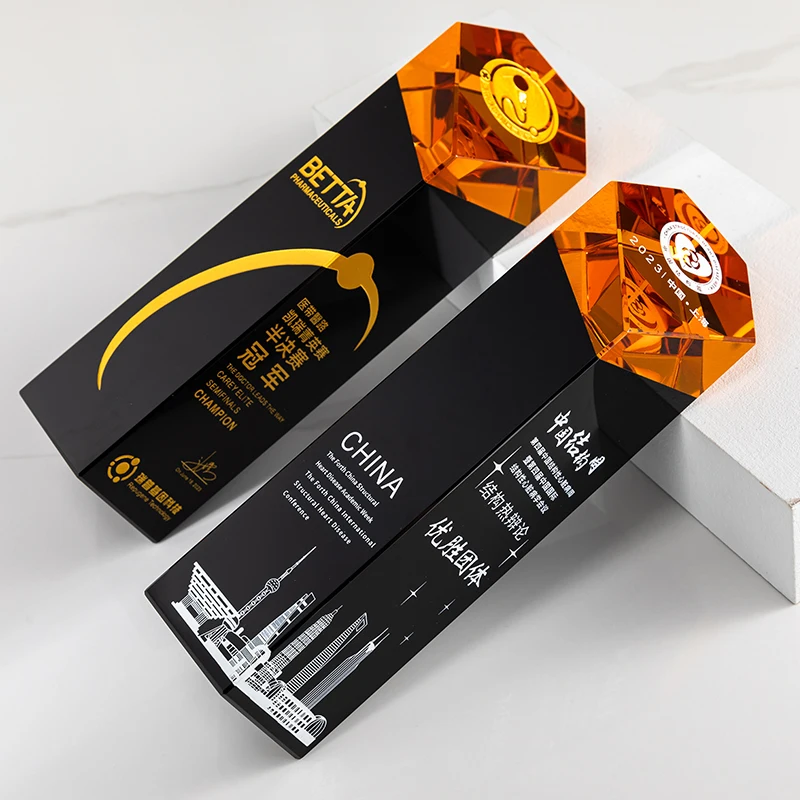 Leuchtendes Schwarz- und Goldkontrast-Kristalltrophy für Unternehmensexzellenz und Sportpreise