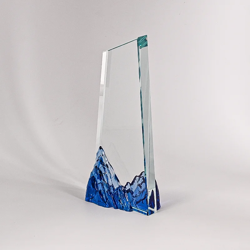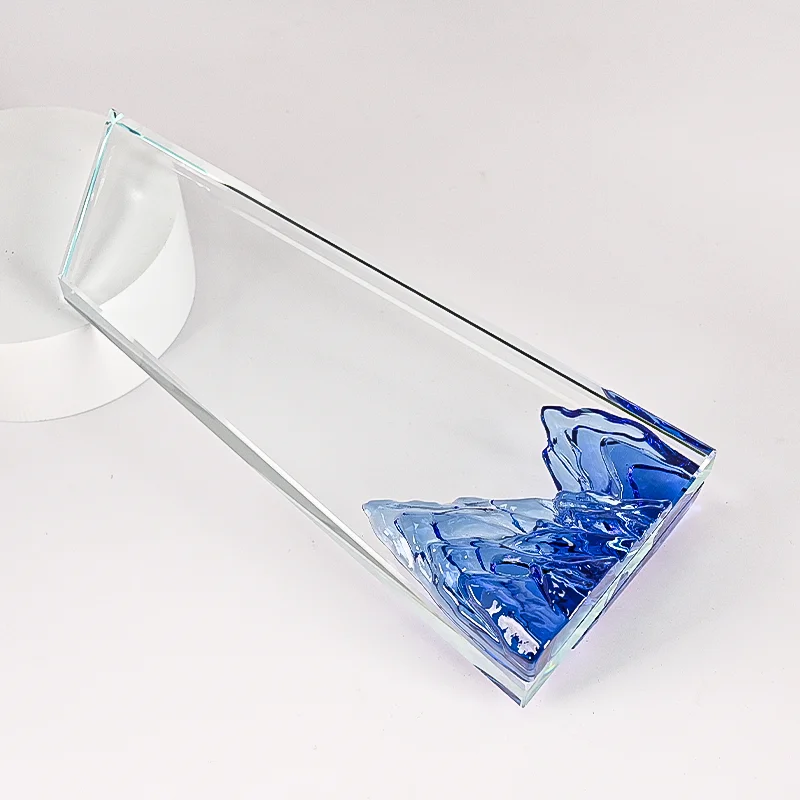 Strahlender blauer Stern aus Kristall und Liuli mit individuellem Design, klare leere Glasurkunde als Geschenk für Meetings und Bürodekoration