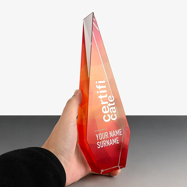 Shining Crystal Crafts Impression Colorful Sur Mesure Verre K9 Trophée Plaque Professionnelle Récompense Décoration de Bureau