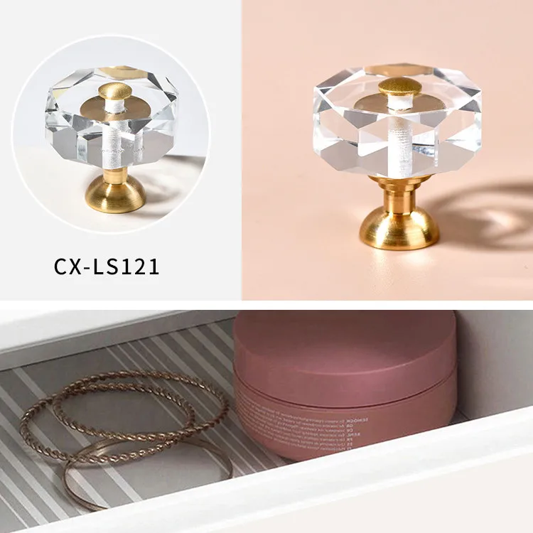 kancing furnitur kaca bening dengan dasar seng berbentuk jamur dan potongan berlian
