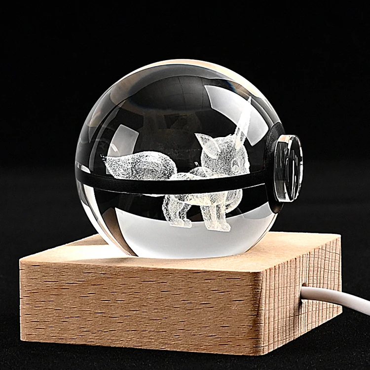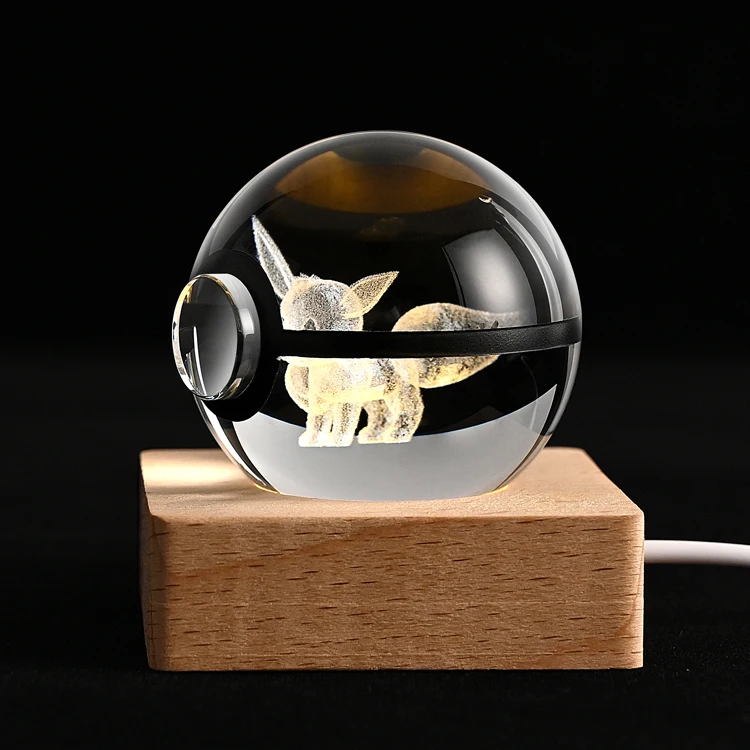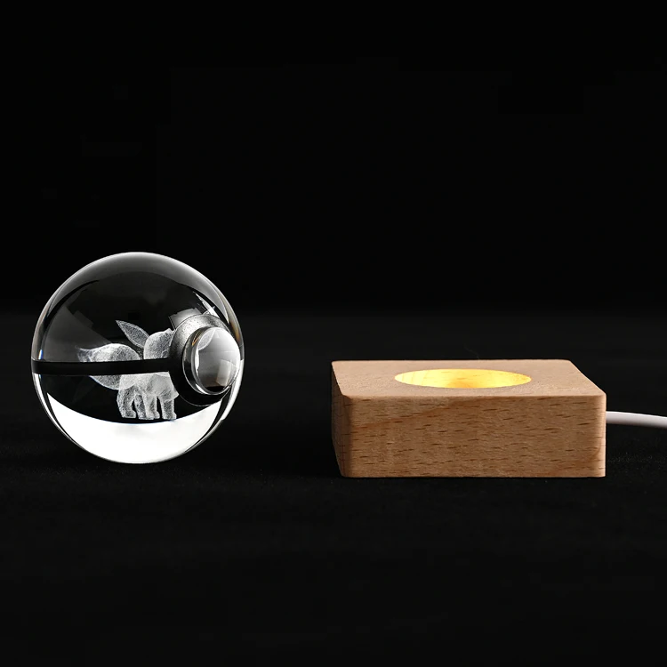Shining New Arrival Crystal Ball 3d Laser Engraved Custom Glass Ball With Led Wooden Base Decoration Ball