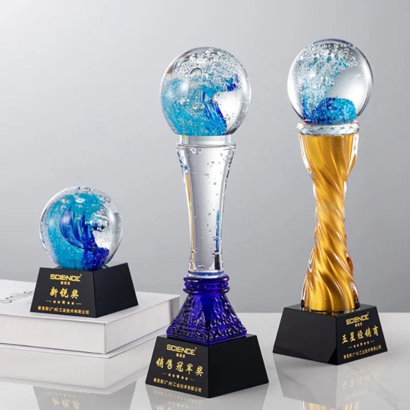 Custom Trophy and Award Craved Engraving Letters Crystal Trophy Creative Crystal Glass Metal Trophy